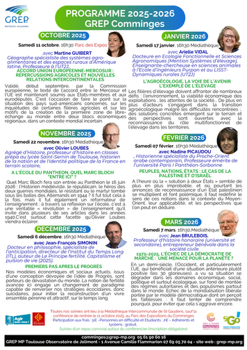 Et nous serons en pleine actualité puisqu'il sera question de l'accord controversé entre le Mercosur et l'UE. Mais qui sait vraiment ce qu'est le Mercosur, qui est en quelque sorte l'équivalent sud-américain de l'Union Européenne, en taille, en population, en niveau économique... Cet accord est donc d'une grande complexité et va bien au delà des controverses sur son volet agricole, qui sont cependant une illustration de l'approche libérale et mercantile générale qui a présidé aux discussions qui ont conduit à cet accord pour lequel les citoyens européens n'ont guère été sollicités !