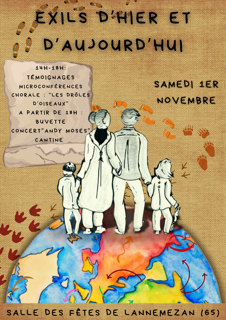 Témoignages de personnes exilées, chorale, concert d'Andy Moses, buvette et cantine (pensez à réserver votre repas !)