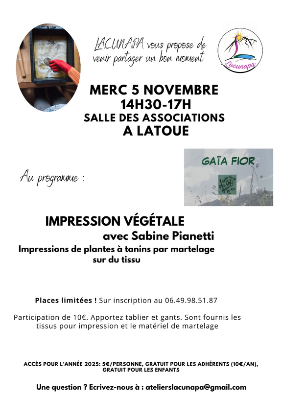 ! Places limitées ! Sur inscription au 06.49.98.51.87