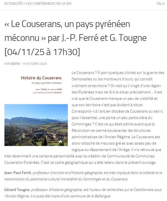 Conférence Histoire du Couserans, un pays pyrénéen méconnu