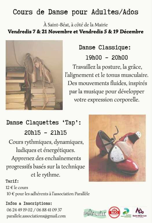 Deux danses, deux univers qui s'ouvrent à vous, il y en a pour tout les goûts. Débutant(e)s, les cours vous sont ouverts aussi, n'hésitez pas à venir découvrir et passer un bon moment de partage.