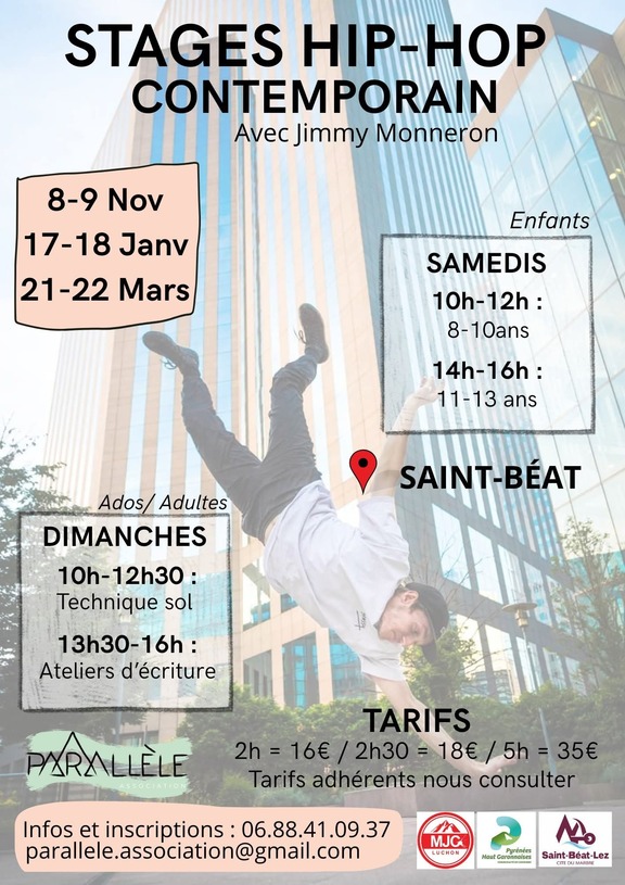 Samedi 10h - 12h hip-hop (8/10 ans) puis 14h -16h hip-hop (11/13 ans)