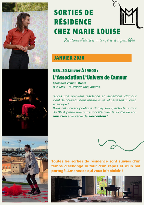 Les sorties de résidence reprennent à la MML ! Venez retrouver l'univers de Camour, qui revient accompagnée d'un musicien et d'un conteur pour sa pièce dansée sur le thème du deuil.