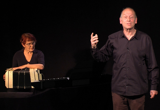 Il est accompagné au bandonéon, piano et sanza, par Catherine Vaniscotte, qui nourrie de ses nombreux spectacles musicaux (salués par l'ADAMI et l'Académie Charles Cros) compose et joue sur scène, une musique mettant en relief la puissance du texte et le jeu de l'acteur.