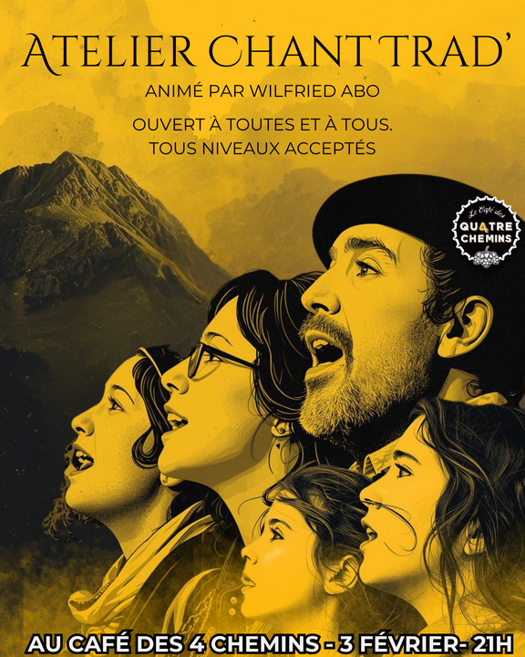Au Café des 4 Chemins, avec notre ami Wilfried Abo, nous avons donc décider de vous proposer, le temps d'une soirée, d'apprendre des chants simples, puissants, collectifs… et surtout partager un moment joyeux et vivant. 🙆
