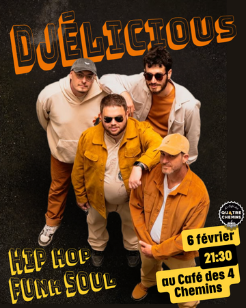 Djélicious c'est : un MC chevronné aux punchlines affûtées comme une mauvaise foi bien placée, un clavier-saxophoniste nourri à la Néo-soul, et un duo basse-batterie aux influences multiples décident un jour d'arrêter de respecter les frontières des genres. Mauvaise nouvelle pour les puristes : ils les démolissent avec méthode.