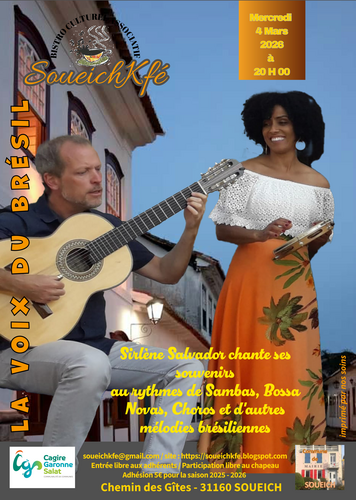 Sirlene Salvador, chant, et Olivier Lob, guitare, au rythme des Sambas, Bossa Nova, Choros, et autres mélodies brésiliennes