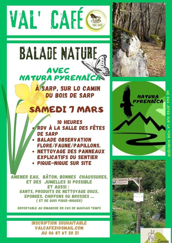 En cas de mauvais temps, la sortie sera reportée. Mieux vaut s'inscrire pour pouvoir être prévenus de modifications. (valcafé31@gmail.com ou 0687673021)