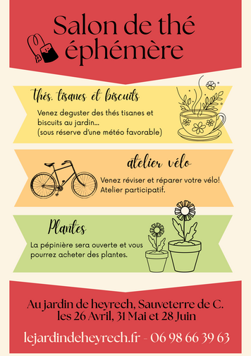 La pépinière sera ouverte pendants ces journées salon de thé et Baptiste vous propose de venir à vélo et de réviser, réparer vos bicyclettes !!