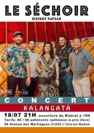 Voyageur infatigable, navigateur musical traversant l'Océan Atlantique sous le soleil des tropiques, KALANGATÀ répand son énergie solaire partout où il accoste. Le quintet débarque ses rythmes et mélodies irrésistibles venues du Cap-Vert, du Brésil, ou encore d'Angola et des Caraïbes.