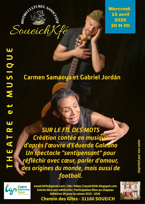 Création contée en musique d'après l'œuvre de l'écrivain et penseur urugayen Eduardo Galeano ("Les Veines ouvertes de l'Amérique Latine"). Un spectacle "sentipensant" ! Pour réfléchir avec notre coeur et sentir avec notre tête... Pour parler d'amour, des origines du monde, de justice sociale, mais aussi de football