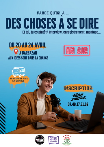 Le stage radio « Parce qu'on a des choses à se dire » se déroulera du lundi 20 au vendredi 24 avril 2026, de 10h à 16h30, au sein de l'association Les Idées sont dans la Grange.