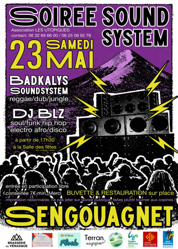 L'association LES UTOPIQUES vous donne rendez-vous le Samedi 23 Mai pour la venue du Badkalys Sound System et Dj Blz dans notre vallée!