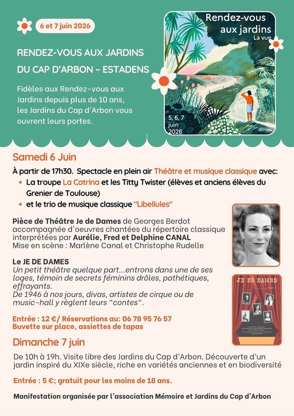 A l'occasion des journées nationales des Rendez-vous aux jardins, l'association "Mémoire et jardins du Cap d'Arbon" d'ESTADENS vous propose un week-end culturel autour de notre patrimoine.